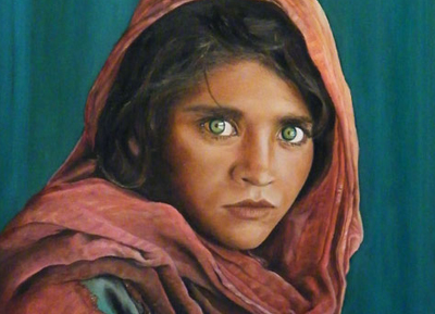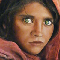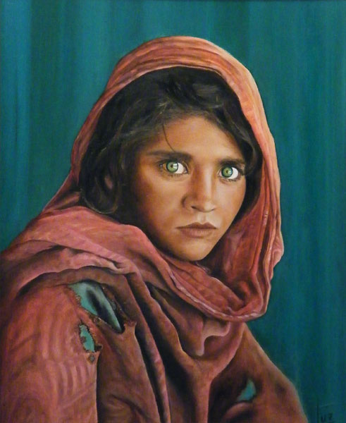 Impresionada con la fuerza del retrato del célebre fotógrafo Steve MacCurry, realiza varias versiones de su famoso retrato.